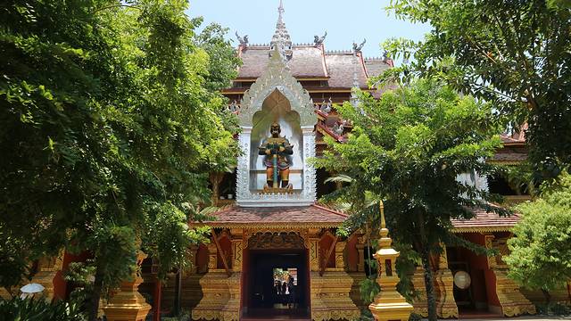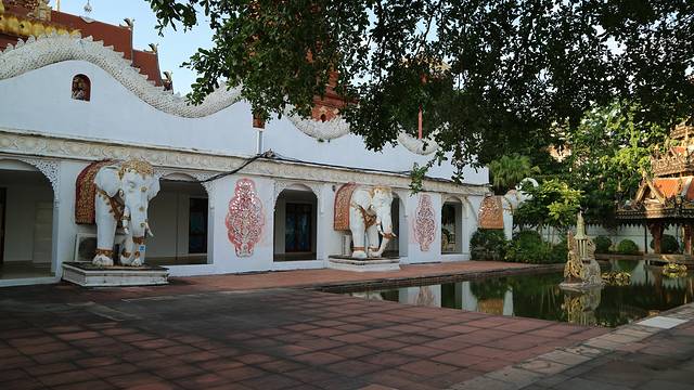 穿过白塔和金塔,就是总佛寺的后门,直通曼听花园。