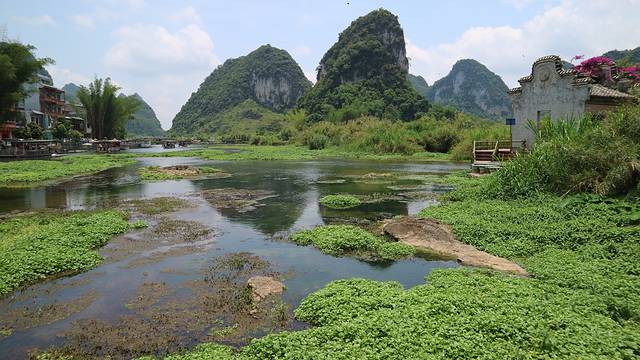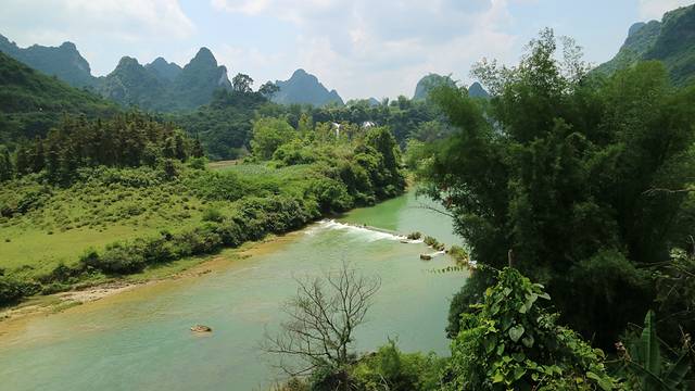 从景区大门进入后,山青水秀的景观扑面而来眼前对面的风景,就属于越南了,中越两国就是以这条河为国界,一分为二。。