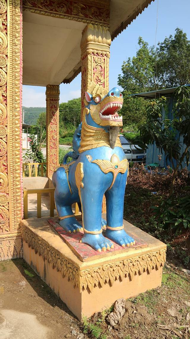 经历了曼广龙的惬意,刚才不好的心情也消散了许多,于是乎我们的目光更集中在路旁的这些村落上,生怕错过美丽的地方。曼召村的村庙远远望去就在一座小山的半山腰上,距离两三公里都能够感受到她的大气之美。为了亲身感受,特从勐混镇绕了一段路才开到她的脚下。