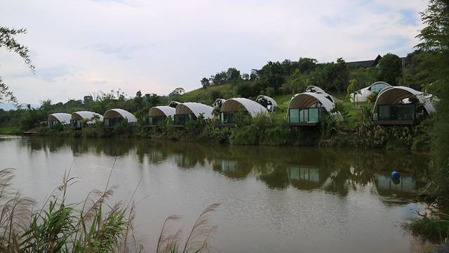 园区里有一个湖畔水屋酒店,类似造形的酒店我在菲律宾见过,那叫一个优雅,我用手机查了一下,温泉酒店的价格每晚在600-6000元不等,但真没有查到这个水屋的价格。。。