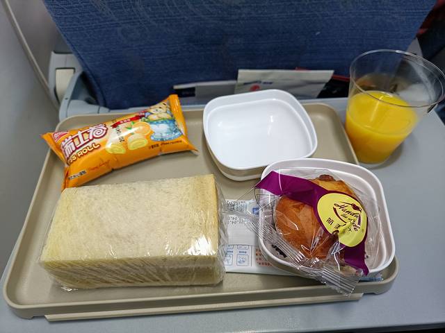 因为航班时间短,原本就没有餐食供应,因为疫情的原因现在连可怜的一小包花生豆都不给了,每个人就给了一小瓶矿泉水,还是事先塞在坐位口袋里的,整个航程没有空乘服务,如今各个航空公司都快步的向廉价航空靠拢了。