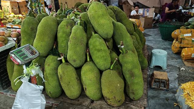 但是转了一转,品种确实很多,但是价格吗,其实和市区没有什么太大分别,除了菠萝以外,这边的水果算不上便宜,榴莲是20-35一斤,山竹25,释加27,芒果4-10元,菠萝蜜扒好的肉也是10元一盒,可能是批发一个价,零售就是又一个价吧,本着贼不跑空的原则,我挑了一个榴莲,24元钱一斤,称了一个大约160,算不上便宜。如果买的少的话,真心不建议特意来这里,市区水果超市或是摊床随便买点就好。。