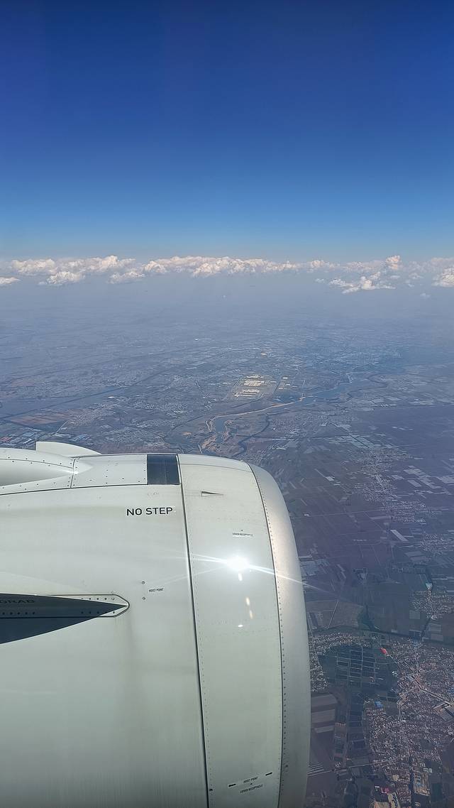 得益于上天眷顾,这次的航班准点顺畅,而且很平稳,这是一架只飞了几个月的崭新的空客A320Neo,发动机巨大,但是噪音却轻了很多。。。