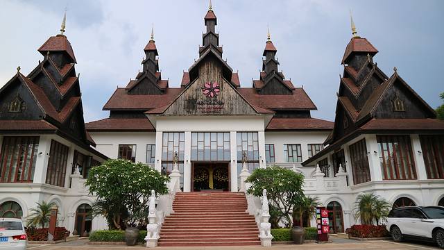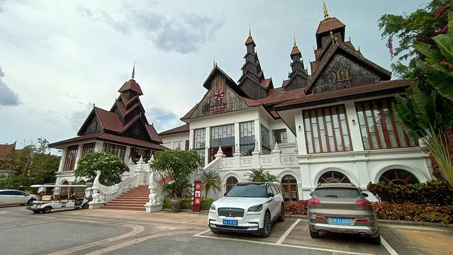 从勐混带着失落返程回来,经过勐海县,这是沿途最大的城市,号称中国普洱第一县,大名鼎鼎的大益茶就是这里出品的!行进的路上,突然看到一个很漂亮的大门,上书“勐巴拉国际旅游度假区”,这是一个景点吗??从未在网上搜到过相关的介绍,走近一看风格又不像景区,倒是像一个住宅小区的售楼处,于是向门口的保安询问,这究竟是一个什么地方。。