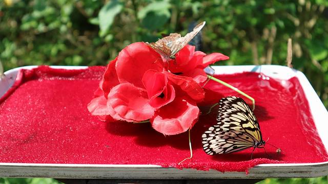 蝴蝶园很有意思,他把酒酿(醪糟)放在盘子里喂蝴蝶,我在想蝴蝶喝了以后难道不会醉吗???醉了会不会酒驾???会不会耍酒疯???会不会打群架!!!