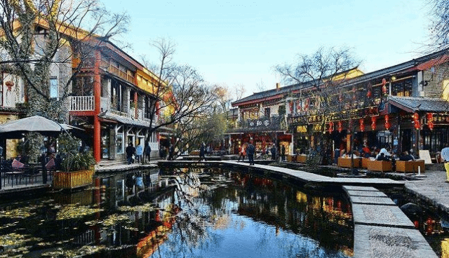 顺河往西挪步,岸两边有鳞次栉比的民居。有的是已改做了商铺,商铺的主人们按照自己的梦想和追求,命名了诸如“一米阳光”“那时花开”“躲起来”等诗意的名字,有意无意地种植了各色的花花草草、绿植乔木,把不大的院落装扮的姹紫嫣红、琳琅满目;有的仍是当地居民的宅院,保留着三坊一照壁的构造布局,从或高或矮的院墙向里面望去,也是生机盎然、一片烂漫的样子,但门口挂着“私人住宅,谢绝参观、请勿打扰”的指示牌,会让蹒跚而来驻足不前的游客或多或少会升起淡淡的失落,猜想着面前这并不深深的庭院里,会隐藏着什么样的云淡风轻,爱恨情仇?有人甚至会盼望着,最好每个这样的院里面都植一株参天的杏树吧,等春天的时候再来,可以看到那满院的春色随一枝怒放的杏花绽放在院墙的上头。