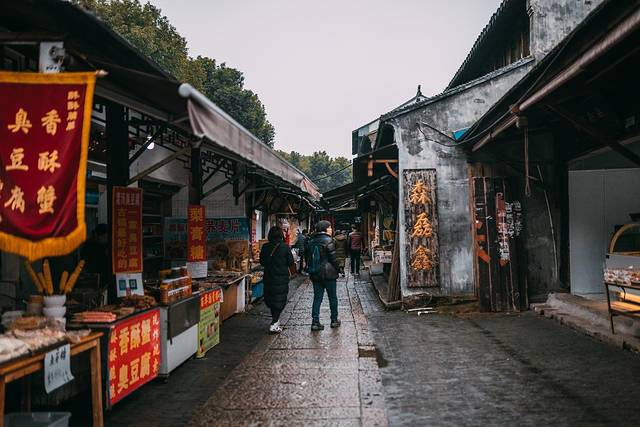 到达古镇的时候已经是中午11点多钟了,饿的不行只能到里面寻觅吃的,古镇里面没有很明确的定界,迷迷糊糊都不知道什么地方算走进古镇里面了,那天是周末,再加下雨人也不是很多,稍微看到了点人多的地方感觉应该算是古镇的里面了,在路上寻觅着,忽然看到了一个”驴肉火烧“的小店浮现在我眼前,既然看到了那就去尝尝看,点了一个饼一碗汤,感觉饼特别好吃,汤也特别好喝,不知道是不是我饿了的原因,还是本身就很好吃,哈哈哈,不管了,吃饱才有力气品味小镇。