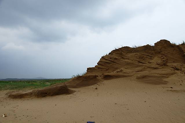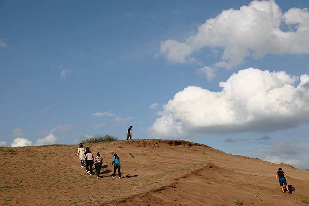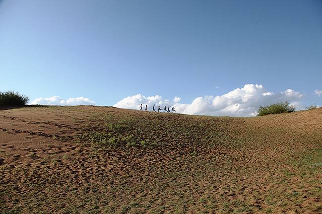 最后一天,安排的是沙窝之行,这可是个玩越野的好地方。太仆寺旗离最近的沙地边缘也有70多公里,向导带路。沙地是一种随时变化的地貌,干旱就沙化,雨多就长出稀疏绿草,因为总变化,所以要找。选一片大大的沙丘,天高云涌,照片就多了去了,普遍自带喜感。而草原的天气真是说变就变,眼看着白云变成灰云,厚厚地垒起来,苍凉冷峻的味道出现在画面中。转瞬雨点噼噼啪啪下来了,一伙人大呼小叫地望回跑,风卷着沙,雷声隆隆!狼狈到这么多人竟没一张照片能发朋友圈晒凄凉!