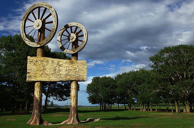 包恩本嘎查牧场口的雕塑,我大喊“好大的风车”,结果打脸:其实人家是蒙古族游牧时期最古老的勒勒车轮,估计表达一种历史的延伸吧