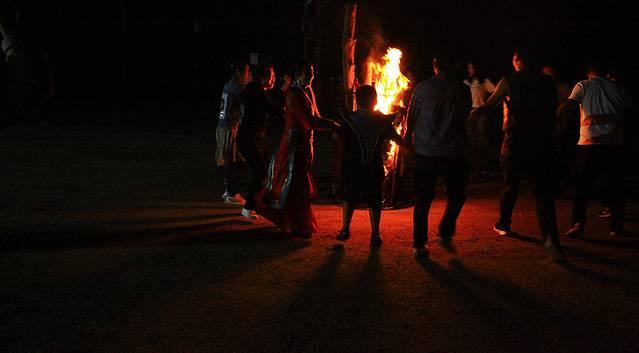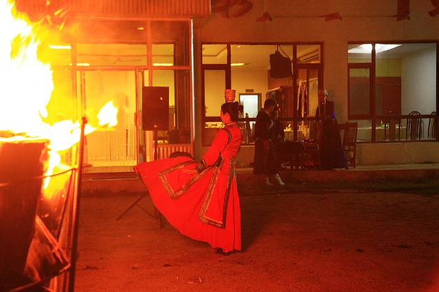 到达草原的当晚必须是烤全羊。蒙古烤羊是现宰、整煮、整烤、整上,半大的羊肉有焦有嫩最好吃。全羊上来还有那种特别俊朗的蒙古妹子捧着哈达来唱歌,虽然听不懂但那纯天然的嗓子几乎把我震聋了,当然酒也都没少喝。马头琴也很好听,蒙古酷哥唱了一种叫呼麦的神奇音乐,不像人声。哈哈,据说是一种很难练成的喉音。之后当然得篝火晚会,high到爆。