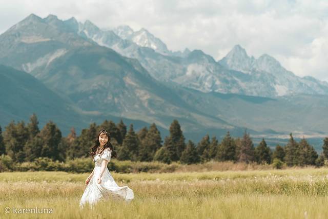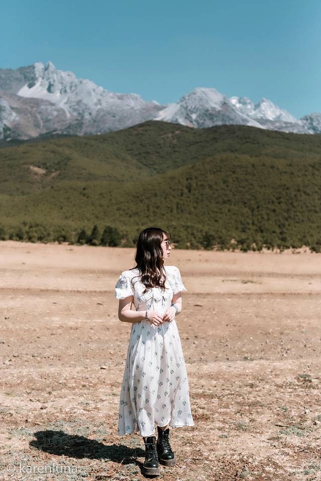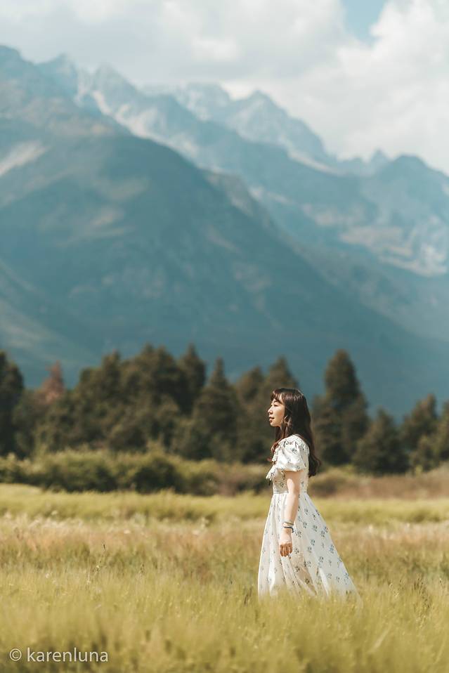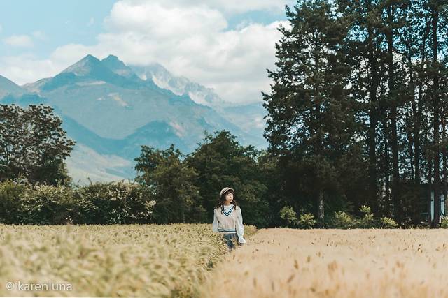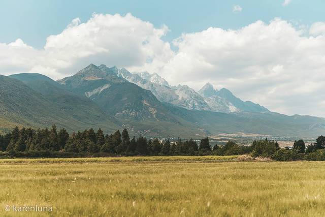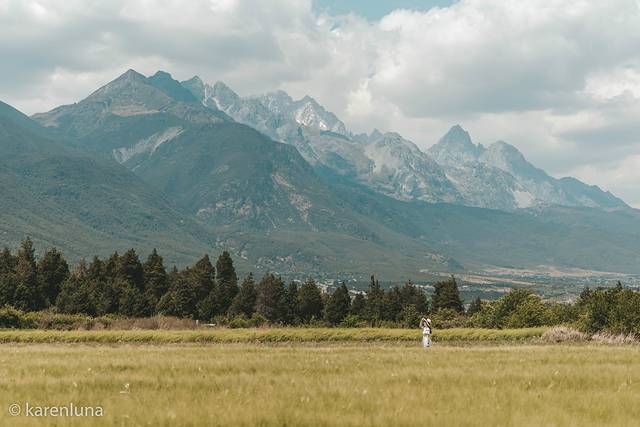 出发前没几天,远在丽江的朋友给我发了张雪山下麦田的照片。当看到微风拂过,层层麦浪随风涌动的静怡与温柔,真是直接种草。所以几天后来到这里的我,也打算按照朋友的定位前往他拍照的地方,来组治愈系的人像美照。