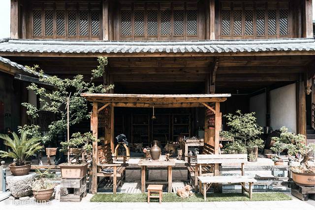 午饭过后按照约定时间,我们随酒店管家一同来到白沙古镇的一处院子门前。木质的大门两侧挂着不少牌子,其中那块写着“云南省省级非物质文化遗产项目纳西族铜器制作传承展示基地”的铭牌尤为耀眼。这两天来来回回路过这么多次居然都没引起我的注意,可见主人的低调。不过对他家小狗狗的印象倒是挺深刻的,今早古镇上嬉戏打闹的狗狗小团体里就数它玩儿得最开心~