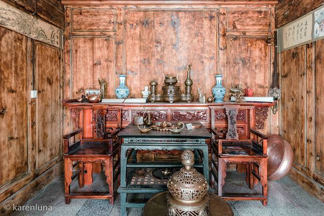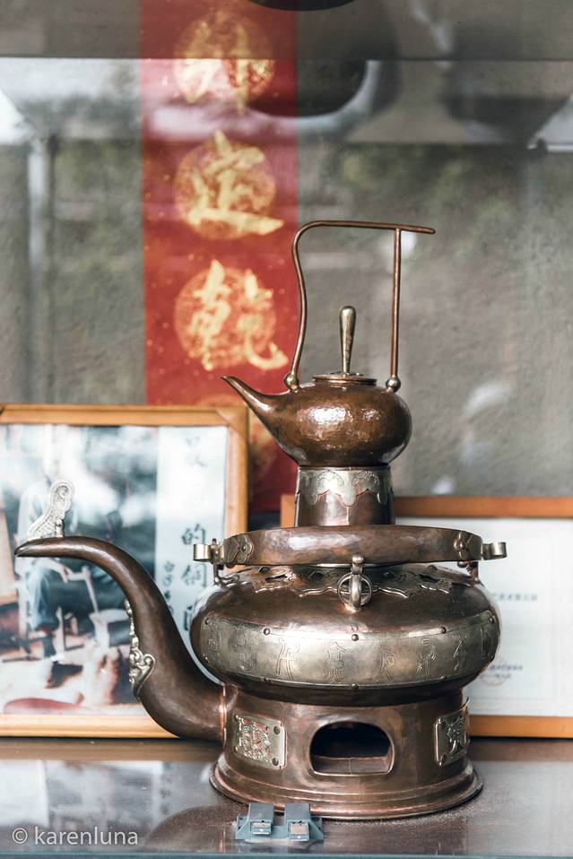 沿着墙院的展示柜里陈列着和老师祖辈大草打造并传下来的各种造型的铜器,从马炊到茶壶、从火锅到铜锁,整个一圈走下来像是看遍了铜器百年历史,也向后人们展示了马帮百年来的生活变迁。