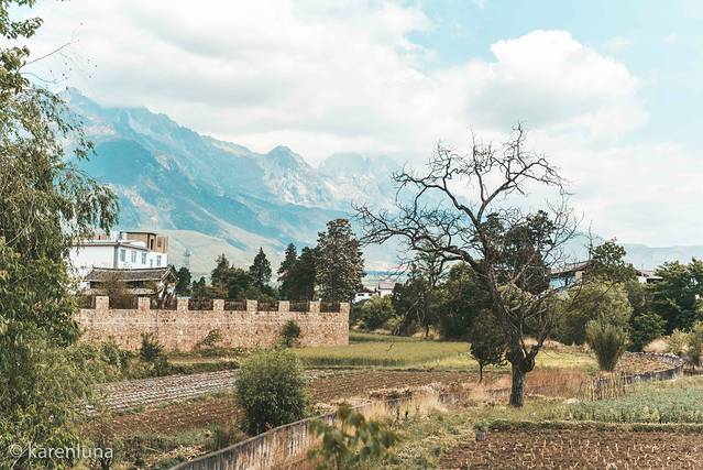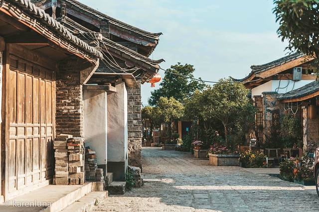 顺着小路往前走,不一会儿便来到了完全没有商业气息的民居区。这两天了解了纳西文化之后,曾经看上去很土的石头房,现在却越看越喜欢了,真应了之前很流行的那句话“民族的就是世界的”。