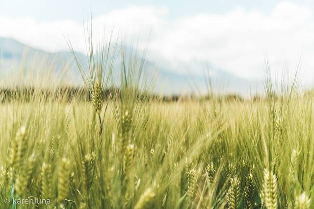 蹬上田埂的那一刻,身处在麦田之中,看到眼前以蓝天白云雪山为背景的一大片随风而动的绿油油麦田,不由得感叹居然可以这么美!