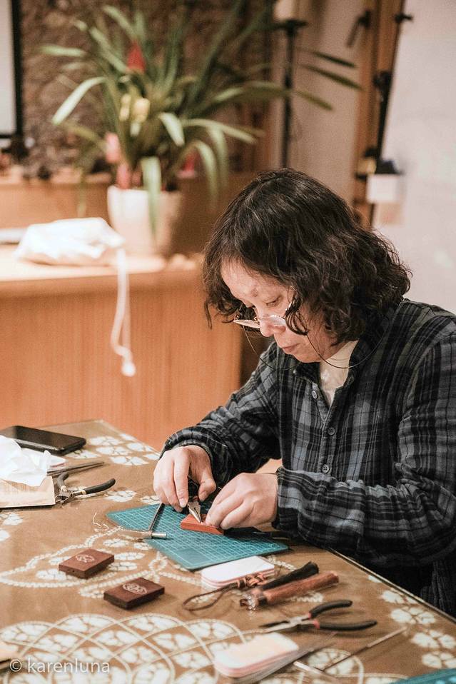 来丽江之所以最终选择入住青普,除了它那具有纳西族特色的院子和房间外,很大一部分原因是它安排的艺文活动都是我跟妈妈非常喜欢的。虽然在丽江这两天的活动安排中并没有我最喜欢的纳西扎染,但跟着非遗传承人亲手制作一个铜器、毫无杂念专心致志的制作一个无事牌,都是非常不错的民俗体验。
