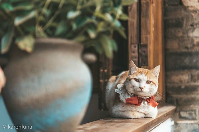 酒店里最喜欢的设计就是每个屋脊上面向院外的瓦猫啦。相传这种瓦制的猫能吞食一切冲犯本宅的妖魔鬼怪、疾病祸害,有镇宅的作用,所以在纳西族文化中是只寓意吉祥的神兽,因其形象很像家猫而得名。