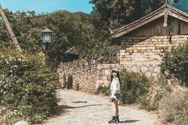 小巷如迷宫般盘根错节,沉迷于特色石屋的我俩七拐八绕得完全不知道自己身处在何地,好在整个村子很袖珍,随便溜达溜达便来到了村头的小桥边,而两侧的庄稼地也让眼前的景色瞬间开阔,有种世外桃源既视感。