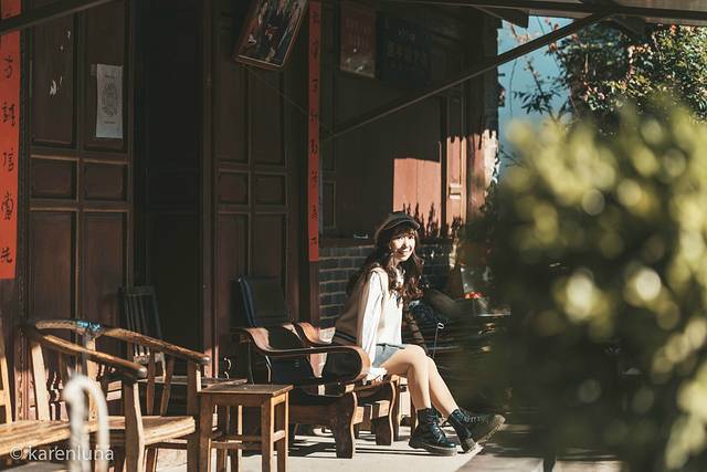 早上的宁静总是转瞬即逝,随着太阳的升起,古镇的游客也渐渐多了起来,想清静度假的我俩决定躲避人群,穿过白沙标志性大牌楼,拐进了一条前一天没走过的无人小巷,欣赏宁静又淳朴的田地民居。