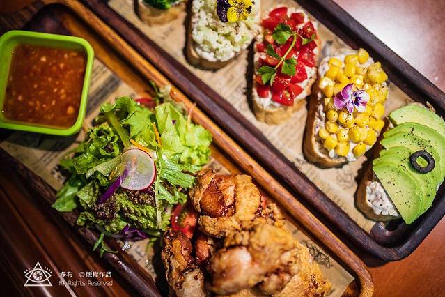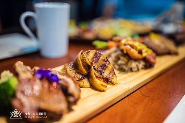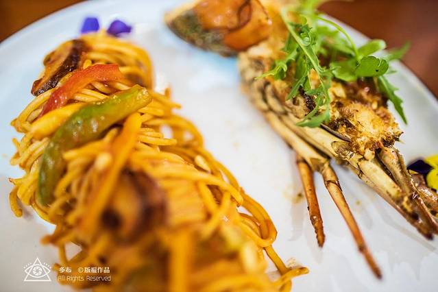 我们几个人比较多,于是就选了鲸咖啡西餐厅,大家能坐在一起边吃边聊。他家的菜单特别丰富,我们就商量好每个人都点些不一样的,拍起照来也好看。之所以叫鲸咖啡,大概就是因为餐厅侧面的玻璃幕墙外不是什么花园或者喷泉,而是一个超大的水区,里面有活泼的海豚和可爱的白鲸每天卖萌耍宝嬉戏打闹。