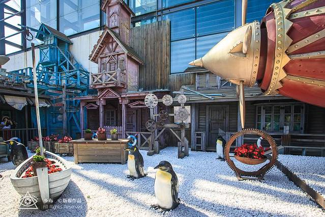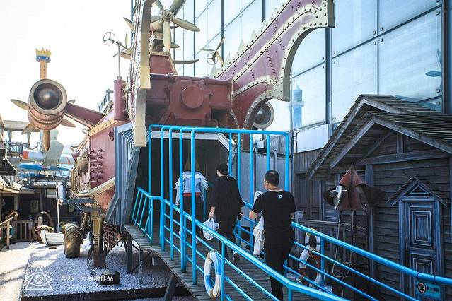 与圣亚的其他几个馆不同,圣亚极地世界的入口更为酷炫,用实木构造出极地大本营的模样,尤其那个极地飞船,看起来就像是宫崎骏动画电影里才会出现的魔幻设计。
