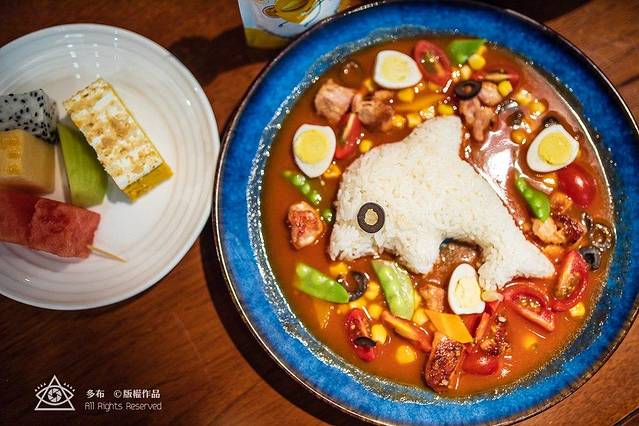 怪不得身边的几桌都坐的是亲子出游的小家庭,小家伙们吃饱了,就乐颠颠地去坐在水缸外的垫子上专注地看起了海豚。所以虽然孩子有不少,但餐厅里却听不到嬉笑吵闹,大人也得以从容用餐,享受惬意的午后休憩时光。