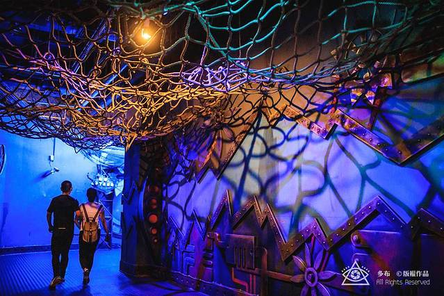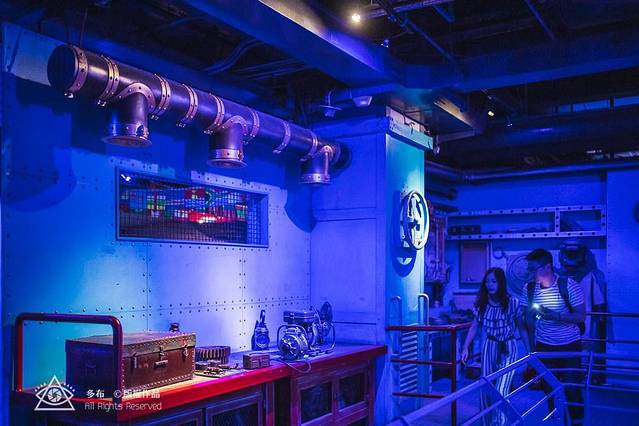 真正的冒险此时才刚刚开始,穿越失去平衡的“奇地小屋”不是一件轻而易举的事儿,布景与设备整体倾斜的房间,会让人有一种失衡的“晕船”感。跨越海底瀑布上的“惊悚索桥”,勇闯巨鲨拦路的“万丈深渊”,冲过天旋地转的“时空长廊”,才能最终来到拱形的超IMAX天幕影院。