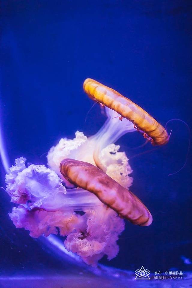 再往前走,大大小小的缸体开始依次出现,最充满迷幻色彩的是水母,伞状半透明的身体和柔软的长须状触手,就像轻灵飘逸的舞者。论辈份,它们比恐龙还要更早出现在这个星球之上。