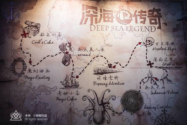 登上百年前沉没的西班牙古船,幻影成像真实还原老船长杰克的幽灵,他飘荡在沉船中,出没在船长小屋,向冒险至此的人们吐露着深海传奇的故事;破碎的船舱外,貌美摄魂的人鱼三姐妹正在忘我舞蹈……