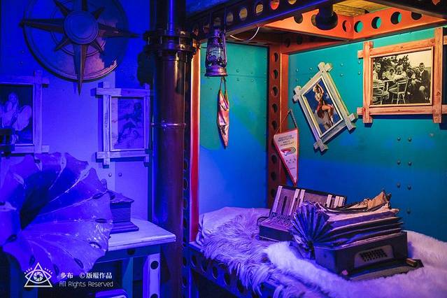 四周的墙壁上,仪表、罗盘、地图和各种管道密布,完全是一幅远离尘嚣的海底工作站图景,角落里还有船员生活居住的船舱实景,逼真的细节还原让我想起贝尔法斯特的泰坦尼克博物馆。对我来说,海洋世界里可远远不止是看看鱼而已,人类对于海洋的探索过程本身,也一样充满着吸引力。