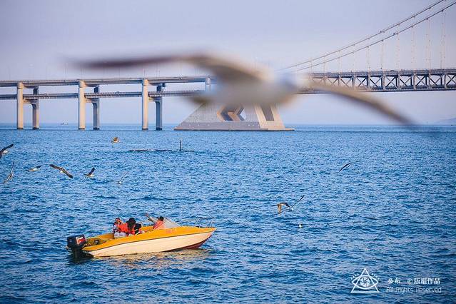 其实喂海鸥的话,还可以往东走上十分钟,在大连著名的星海广场不光可以看到摩天大楼组成的天际线,走到广场最南边建市百年纪念城雕的海边,那儿的海鸥才叫多。这些飞行技巧高超的精灵善于捕捉人们扔上天空的食物,个别胆大的会飞到人手边,一个俯冲低头叼走送上门的食物。