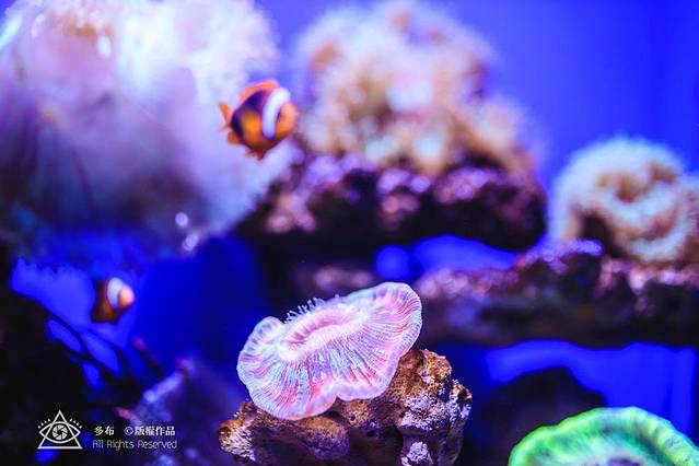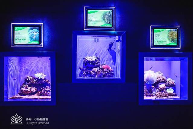 活体珊瑚维生技术展示馆,汇聚了来自各地的百余种、一千多个珊瑚礁生物群,用现代科技表现手法惟妙惟肖地再现了海洋中的珊瑚生态系统。色彩绚丽又形态各异的珊瑚礁与不同的鱼儿相映成趣,构成了一个个如礼花般绚烂的海底神秘后花园。