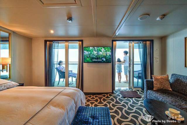 这次我们入住的是世界梦号邮轮15层的皇宫套房,全程真的有感受被用心照顾。上船第一天,当我们先吃过晚饭再来到房间门前的时候,行李已早早地被安顿好了。打开门,房间的宽敞程度完全超出了预想。