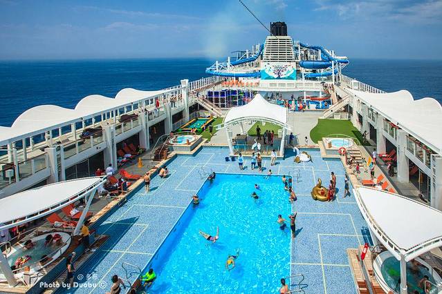 在邮轮上,最开心,去得最多的地方,就是露天游泳池!