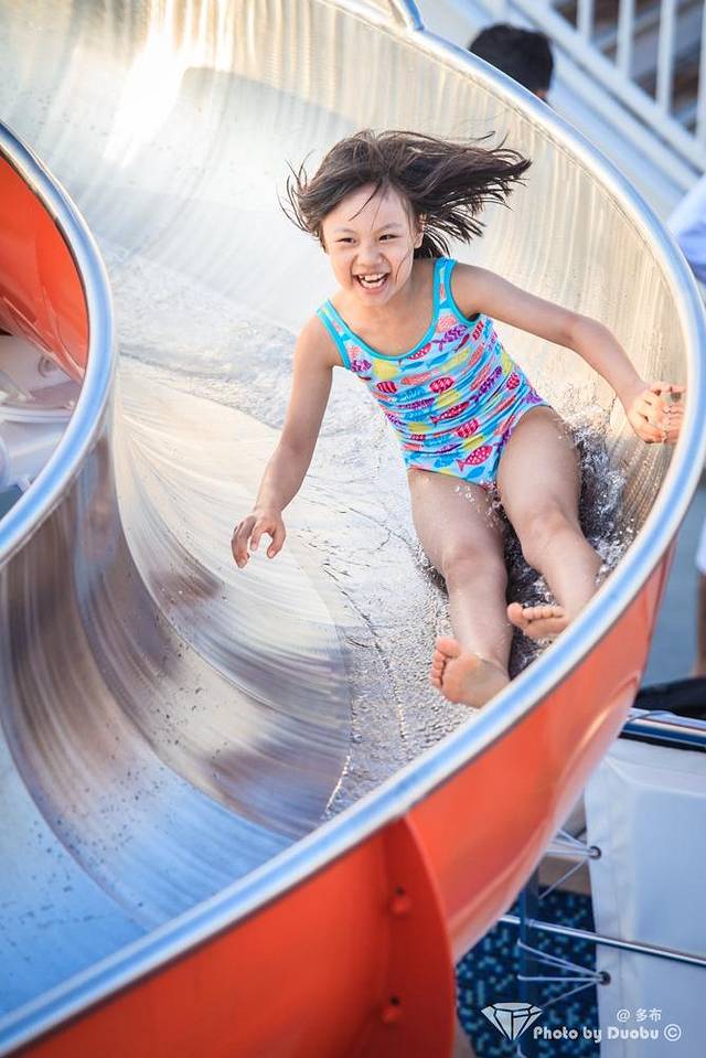 世界梦号16层甲板上的露天游泳池,不仅仅是游泳池,更像一个游乐场。布丁在这里从一个怕水的小孩,变成了一条扎进游泳池就捞不出来的鱼。