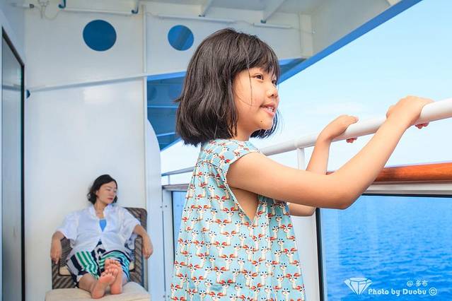 身在一艘巨轮的甲板上,比海滩更能让人充分享受到海洋。我们一家人都很喜欢时不时在甲板上闲晃一下,感受有点晒人的阳光,感受清爽同时真的很“袭人”的海风。在海边看过很多次海了,而在甲板上,可是完完全全被海洋包围,怎么看也看不够。