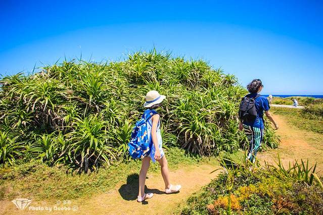 第一站去了平安名崎灯塔,这个白色灯塔位于东平安名岬,这是一个长约2公里,由隆起的珊蝴礁的石灰岩形成的细长型岬角,恣意地伸向太平洋。灯塔就在岬角的尽头,爬到塔顶,可以环顾360°的极致风景。这座灯塔,可以入选我最喜欢的海边风景之一。