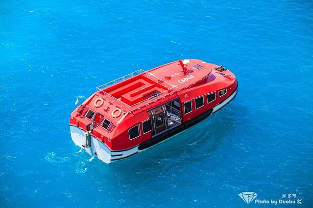 第二天清晨,还没到下船时间,站在房间露台上看到船已近岸,海水的颜色果然蓝得不一般。邮轮自身配备的红色小艇在宫古蓝的海面上来回游弋,这配色实在太养眼了。