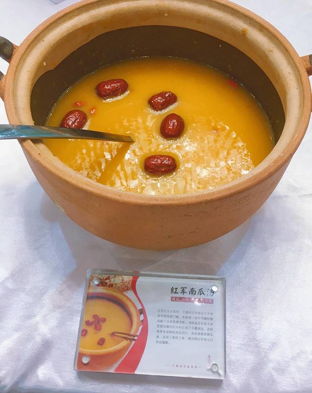 故事从87年前说起,红军从 于都 集结出发,开始万里长征。为帮助红军顺利渡河, 于都 人民无私奉献,扩红参军、借谷征粮、派丁调夫、捐木架桥,倾尽全力。离别总是伤感, 于都 人民手捧着什锦盒头(烧卷子、花生、豆子、云片、辫酥等),端着南瓜汤送红军亲人走上浮桥,盼望亲人早日回家。客家氽前夹,红军共饮大锅汤,是同甘共苦的革命情结;雩河鱼干,河鱼晒制成干粮,承载妻子对丈夫的依依不舍之情;军民鱼水情、苏区“二合一”,是红军和 于都 人民交付生命的信任和血浓于水的情谊;长征野菜,忆苦思甜、不忘初心。当红军历尽无数艰难,取得二万五千里长征的伟大胜利后,终于迎来幸福大团圆;苦尽甘来,人民的生活过得愈来愈好,金牌猪手、利村牛肉慢慢成为了家常菜。