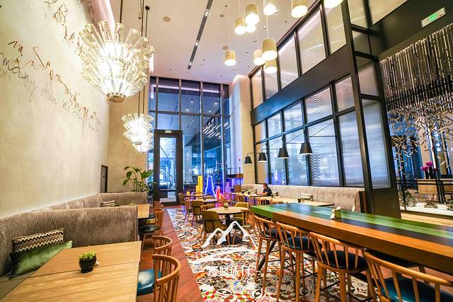 大堂右手边是酒店的“湾”特色餐厅,从上午11点开始,到晚上9点,这里都提供简约而不简单的餐饮,价格不贵,五六十元就能享受一顿美美的正餐,太适合写字楼里的白领们。