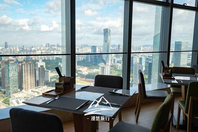 燃餐厅位于酒店57层,面向吧台的右手边。整个燃餐厅空间非常大,全部角落都坐拥深圳湾一线美景。