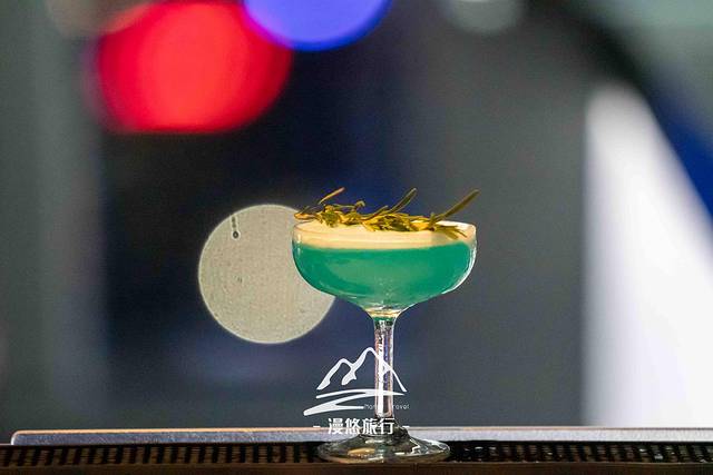 再来一杯青草蜢曼哈顿吧!这晶莹剔透的湖蓝色太懂我的心思了,和我的发箍以及裙子同色……为有着共同的色彩而干杯吧,轻轻喝上一口,嘴角瞬间流淌着迷迭香和伏特加的独特味道!