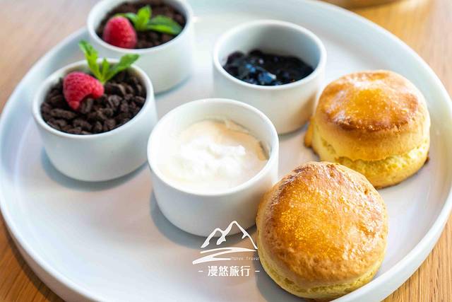 静坐一会后,服务员送来了精致的下午茶。作为一个臭美妞儿,必须先和甜品来一张合影,背景是深圳湾噢,深圳独一无二的美。