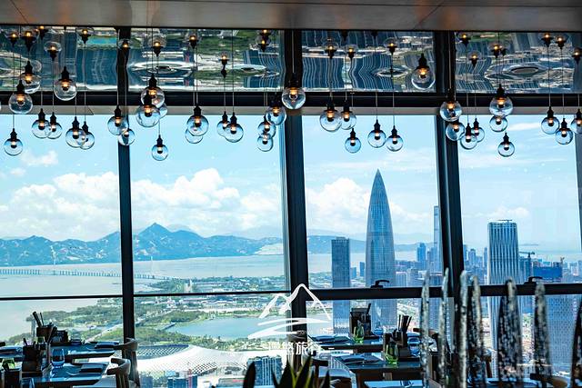 沿着57层转一圈,你可以看遍整个深圳湾的夜景。