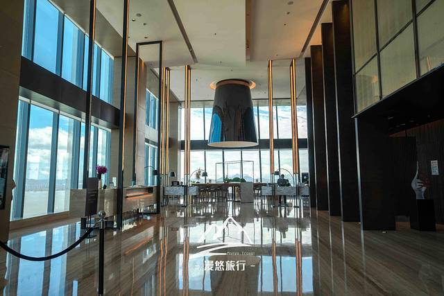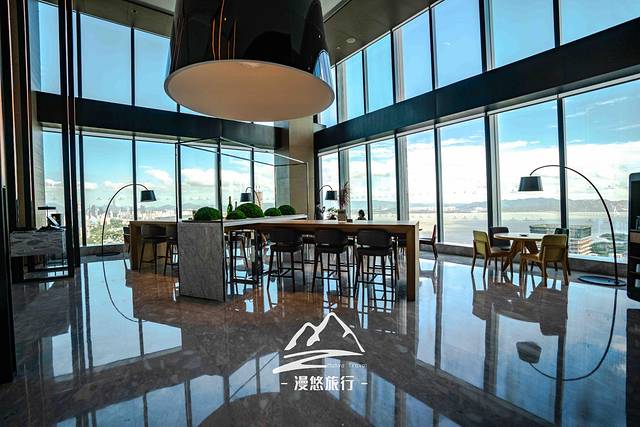 酒店大堂在57楼,当我一出电梯时,眼睛全被正前方的景象牢牢勾住了,心里大呼:“哇,这视野太赞了吧”。整个大堂全是全景落地窗,深圳湾的风景在这里展露无遗,鳞次栉比的摩天高楼,浩瀚无垠的大海……就连海对面的香港,一一都近在眼前,怎一个美字了得!