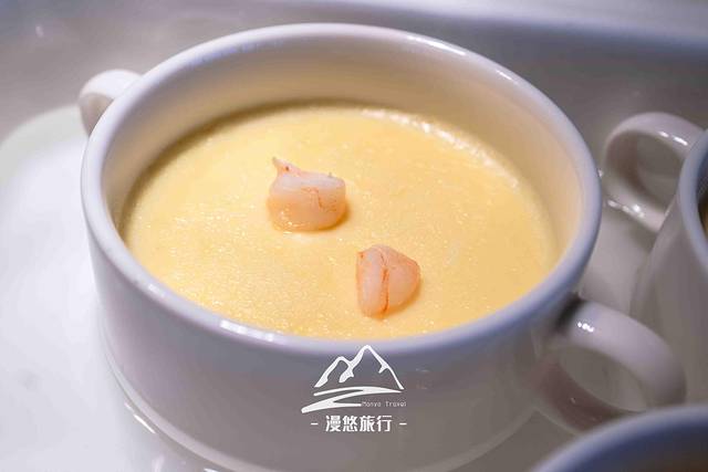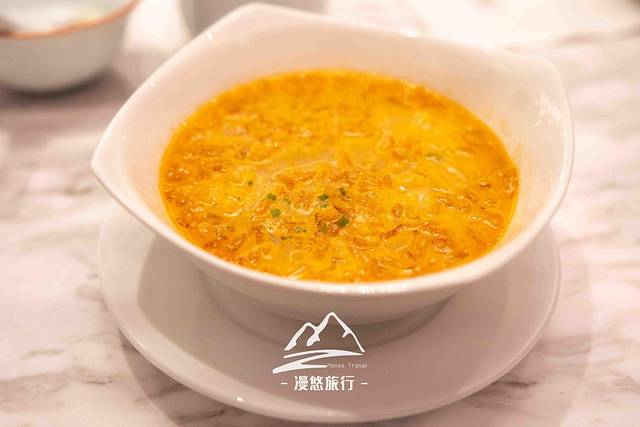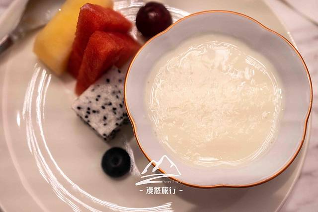 时令水果拼杏仁茶。这是一道饭后甜品,主角是杏仁茶。这里的杏仁用料非常足,入口就是非常浓郁的杏仁香,一碗下去,妥妥的都是营养。