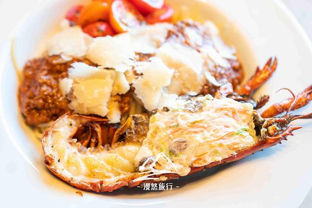 如果不喜欢吃牛排,你也可以选择波士顿龙虾意面,这个分量还是挺足的,女生一份吃下去,再吃别的就有点困难了。