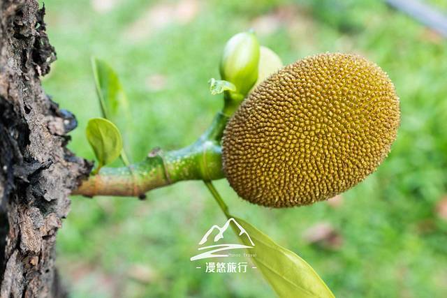 如果你留心,你会发现路边种植有许多菠萝蜜树,这个季节的树上,真是硕果累累,有些果实长得比较矮,就在手可以触摸的位置上,样子萌萌哒很可爱。忍不住想揪下来带回家,但理智告诉我不可以。