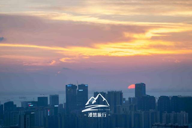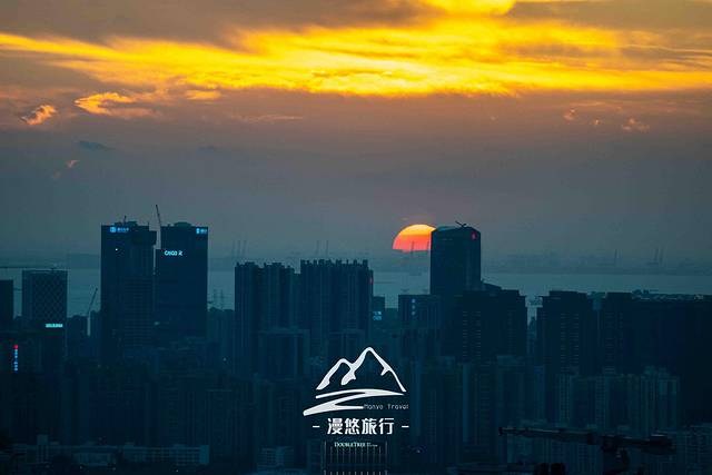 很快,红彤彤的落日在我们的注视下,迅速下沉了。尽管太阳下去了,但落日大方地把余晖撒在了人间。放眼望去整个深圳湾上空,俨然一片熊熊燃烧着的火海。