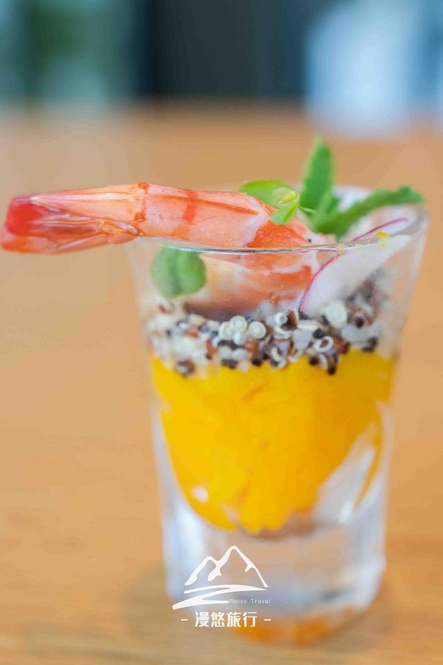南瓜藜麦虾杯也很赞,从上往下是虾仁、藜麦、南瓜,真是非常有创意,非常养生的一道甜品。